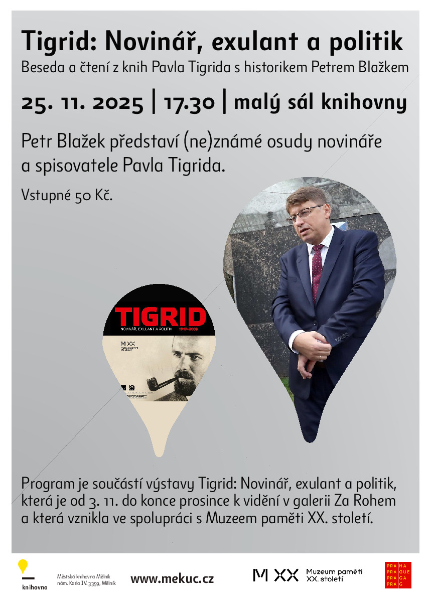 Program je součástí výstavy Tigrid: Novinář, exulant a politik, která je od 3. 11. do konce prosince k vidění v galerii Za Rohem a která vznikla ve spolupráci s Muzeem paměti XX. století.